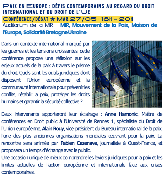 La Maison de l’Europe de Rennes et Haute Bretagne s’associe à la commune de Maen Roch pour l’organisation de cet événement.