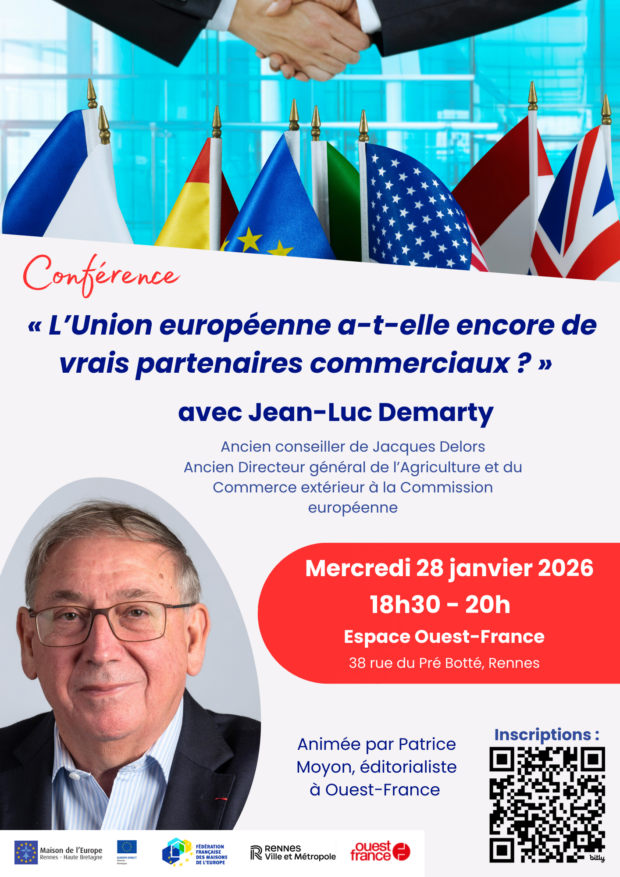 Cet évènement est le premier d’une série de 4 tables rondes que la Maison de l’Europe de Rennes et Haute Bretagne va organiser en Ille-et-Vilaine dans le cadre son projet « L’Europe e(s)t notre avenir » financé par la Commission européenne en France et la Région Bretagne.